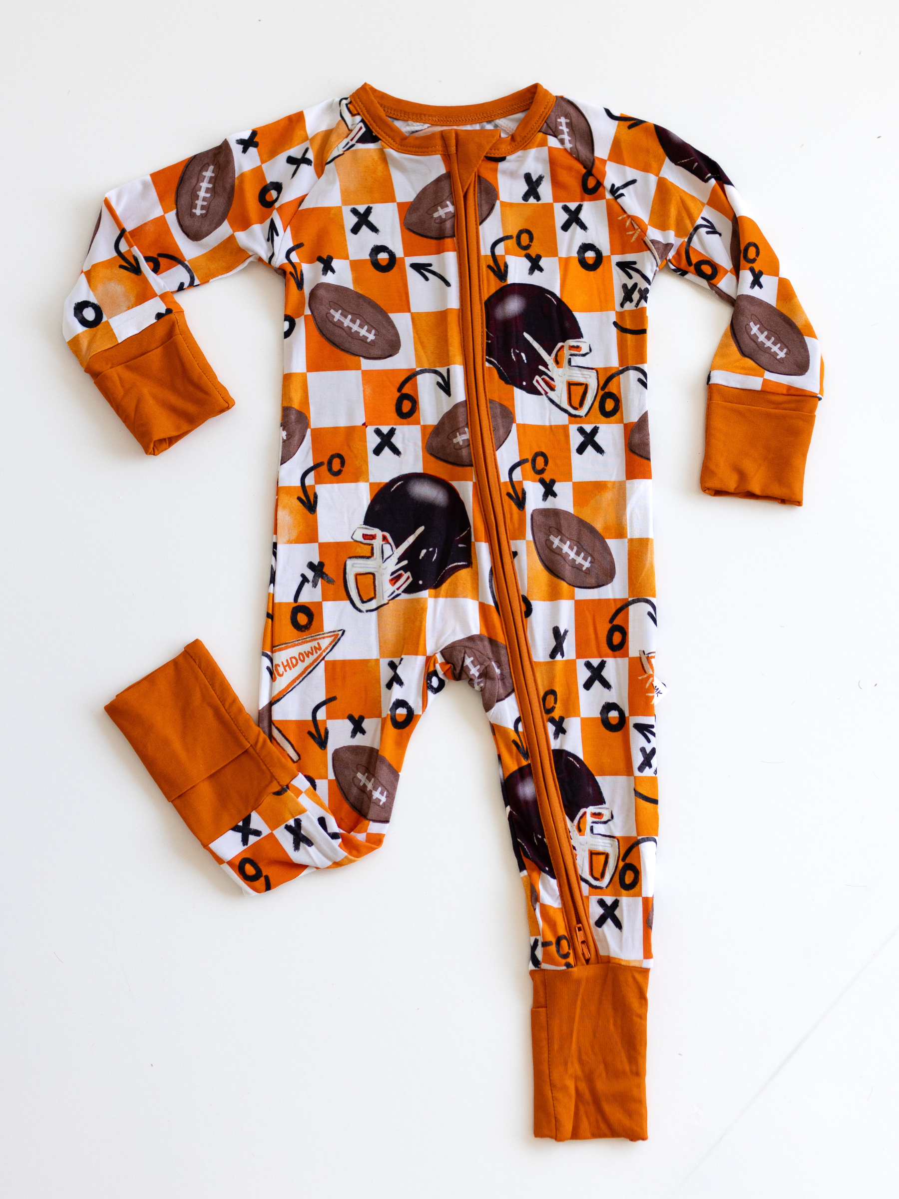 First Down Orange Zipper Romper